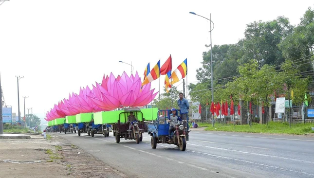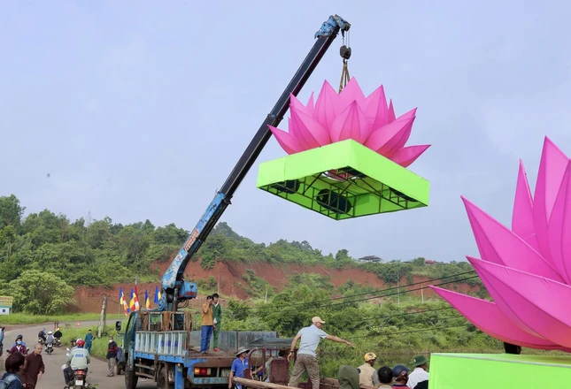Theo đó, lễ thắp sáng 7 đóa sen hồng trên hồ Nhân Cơ diễn ra vào lúc 18 giờ 30 ngày mùng 8-4-Quý Mão.