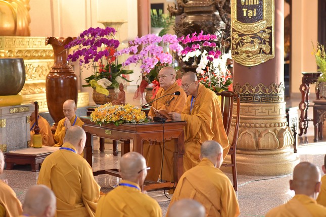 Trước khi bắt đầu buổi họp, Trưởng lão Hòa thượng Thích Nhật Quang, Ủy viên Thường trực Hội đồng Chứng minh, Trưởng ban Quản trị Thiền phái Trúc Lâm Việt Nam đã niêm hương bạch Phật; đại chúng đảnh lễ Tam bảo, đồng tụng thời Bát-nhã tâm kinh.