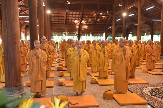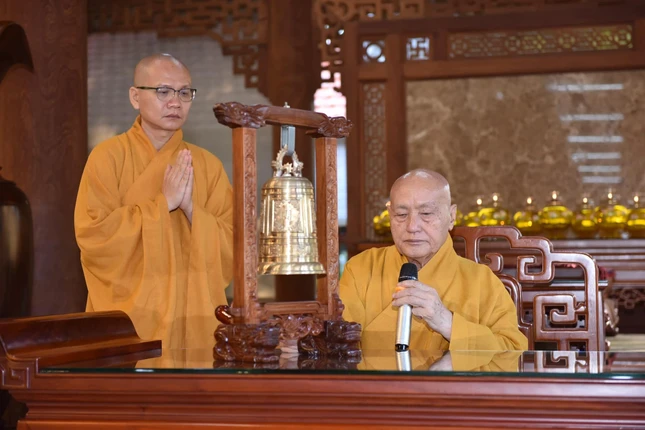 Theo đó, trong không khí trang nghiêm, chư Tăng tổ đình Thường Chiếu cùng chư tôn đức môn hạ đệ tử trong tông môn đã vân tập về thiền đường đảnh lễ Trưởng lão Hòa thượng Thích Thanh Từ - người đã có công khôi phục dòng Thiền Trúc Lâm Yên Tử, một lòng hướng dẫn chư Tăng Ni, Phật tử tu học theo Chánh pháp.