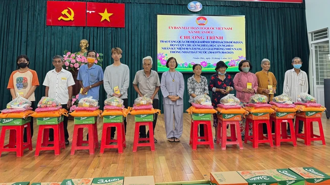 Được biết, mỗi phần quà trao tặng trị giá 650.000 đồng, gồm phong bì tiền mặt và các nhu yếu phẩm. Bên cạnh đó, phái đoàn còn hỗ trợ 10 chiếc xe đạp, mỗi chiếc trị giá 1.250.000 đồng và 10 phong bì mỗi phong bì 200.000 đồng cho các em học sinh hiếu học, nghèo vượt khó thuộc Trường PTTH Nhuận Đức 1 và Nhuận Đức 2.