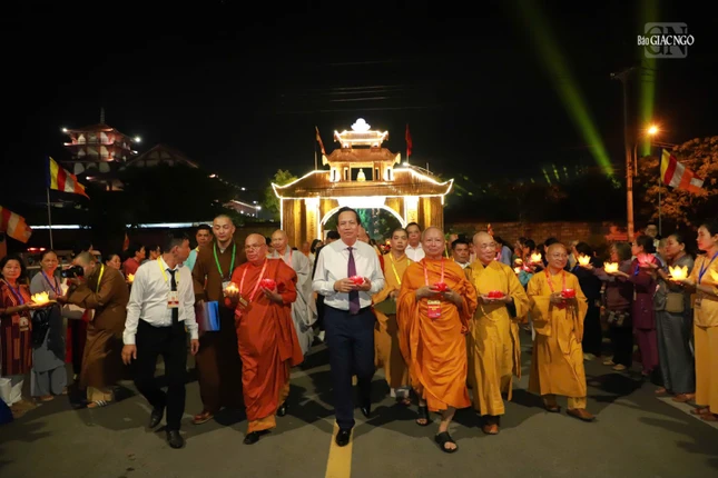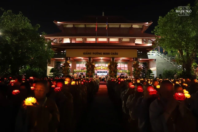 GNO - Vào tối 6-5, tiếp tục các hoạt động trong chương trình Đại lễ Vesak Liên Hiệp Quốc 2025, Lễ hoa đăng cầu nguyện hòa bình thế giới được diễn ra nơi khuôn viên Cơ sở II - Học viện Phật giáo VN tại TP.HCM (xã Lê Minh Xuân, H.Bình Chánh).