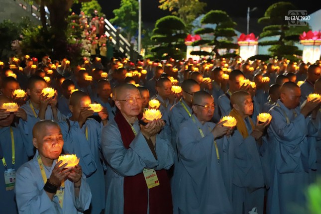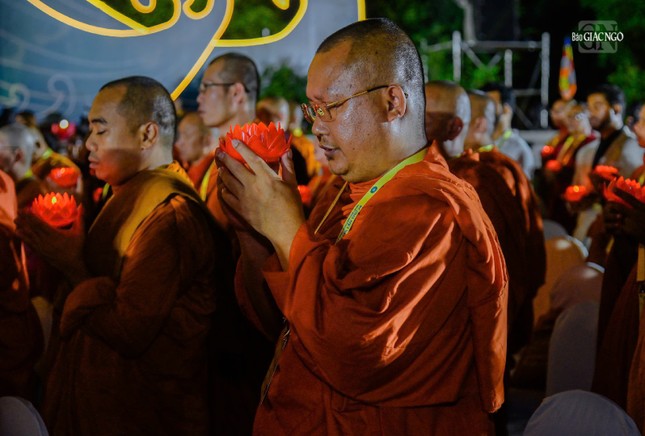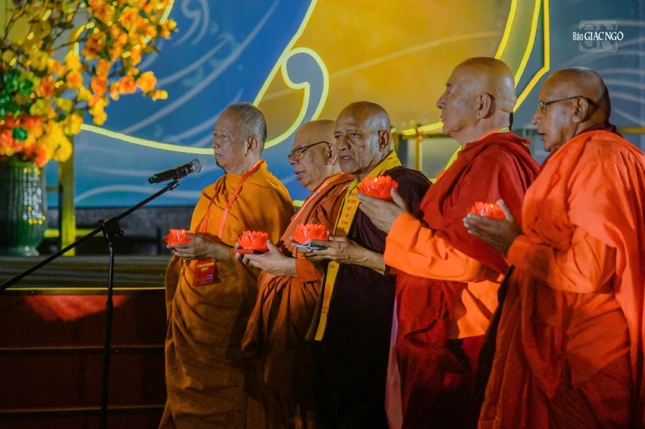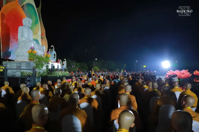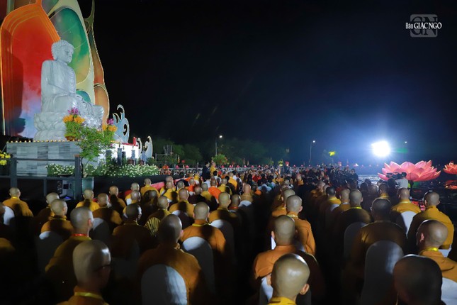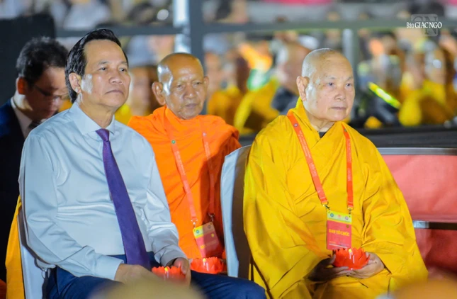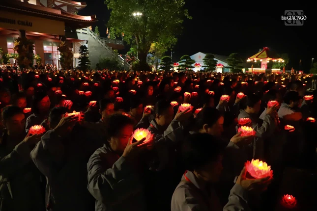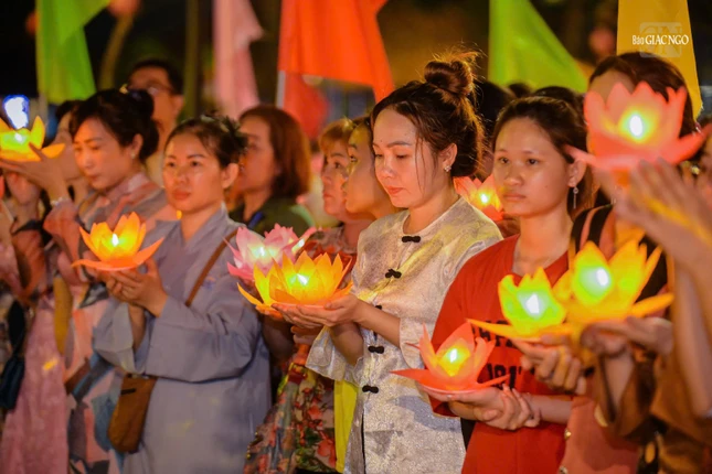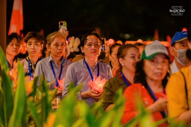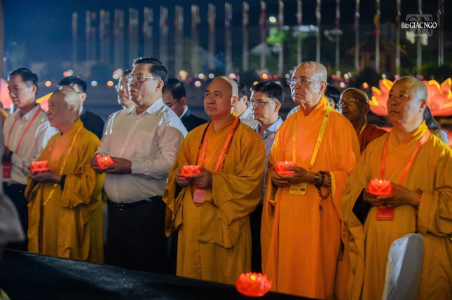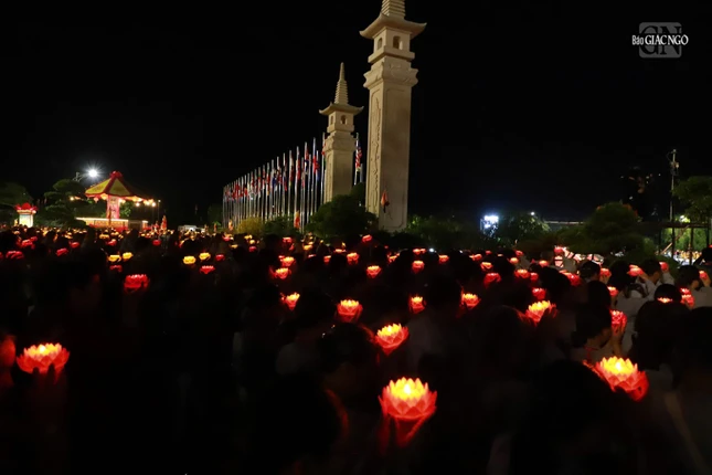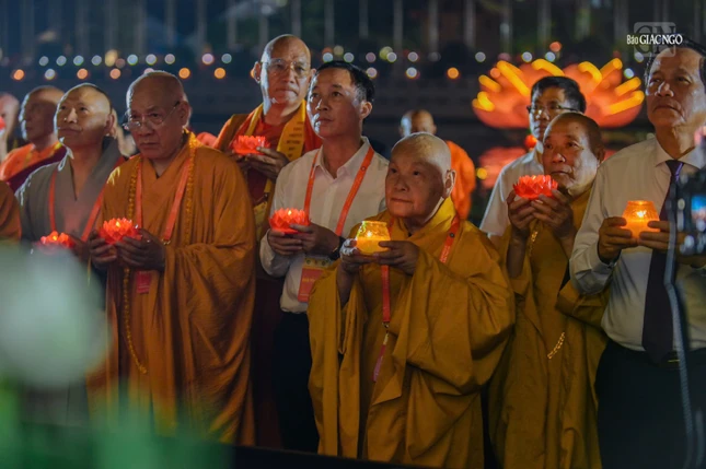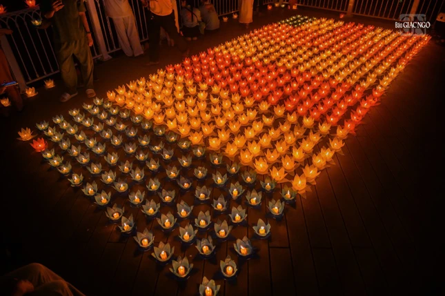 Hơn 35.000 hoa đăng được chư tôn đức thắp sáng lung linh với ước nguyện quốc thái dân an, thế giới hoà bình, chúng sinh an lạc.