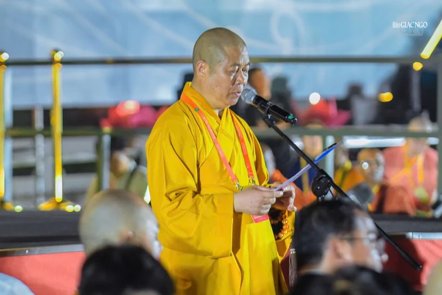 Phát biểu khai mạc, Hòa thượng Thích Bảo Nghiêm, Phó Chủ tịch Hội đồng Trị sự, Phó Chủ tịch Ủy ban Tổ chức Đại lễ Vesak Liên Hiệp Quốc 2025 cho biết ý nghĩa của buổi lễ là cùng nhau hướng tâm cầu nguyện cho hòa bình thế giới và an lạc cho chúng sanh.