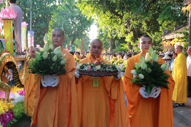Đoàn xe rước Phật gồm 42 vị trí xe được Ban Tổ chức sắp xếp, trong đó có 32 chiếc xe hoa đi qua các trục đường chính tại TP.Huế như: cầu Gia Hội, đường Trần Hưng Đạo, cầu Trường Tiền, đường Lê Lợi, Điện Biên Phủ, Sư Liễu Quán, vào tam quan chùa Từ Đàm.