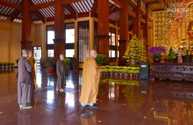 GNO - Ngày 30 Tết (21-1), chư vị giáo phẩm lãnh đạo Ban Trị sự GHPGVN TP.HCM đã thân lâm Việt Nam Quốc Tự - (242-244 3/2, P.12, Q.10) kiểm tra công việc thiết trí đàn tràng chuẩn bị cho Pháp hội Dược Sư Tiêu tai diên thọ cầu quốc thái dân an - nguyện phong điều vũ thuận.