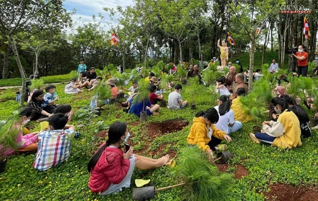 GNO - Sáng nay, mùng 8-4 Âm lịch, tại chùa Liên Hoa (Kiến Đức, Đắk Nông) đã tổ chúc chương trình trồng cây Kính mừng Phật đản Phật lịch 2566 (2022) dành cho các em thiếu nhi.