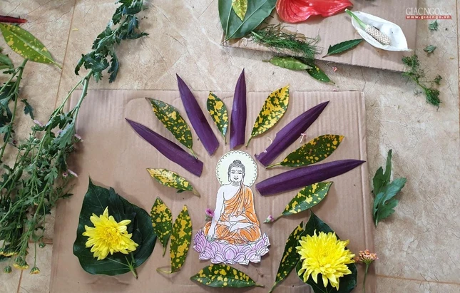 Các em được hướng dẫn để tự làm vườn Lâm Tỳ Ni mừng Phật đản |