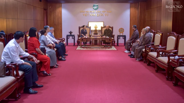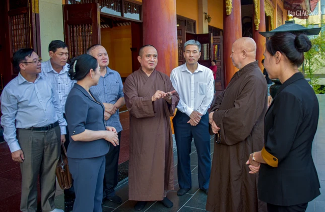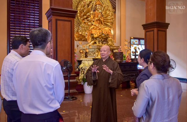 Vị giáo phẩm lãnh đạo GHPGVN TP.HCM cũng thông tin đến bà Thứ trưởng Bộ Dân tộc và Tôn giáo về lịch sử hình thành, ý nghĩa tinh thần của Việt Nam Quốc Tự - trụ sở Ban Trị sự GHPGVN TP.HCM trong sự phát triển của Phật giáo Thành phố; cũng như xá-lợi Trái tim Bồ-tát Thích Quảng Đức - bảo vật không chỉ của Phật giáo mà của quốc gia, hiện đang được tôn trí nơi đây.