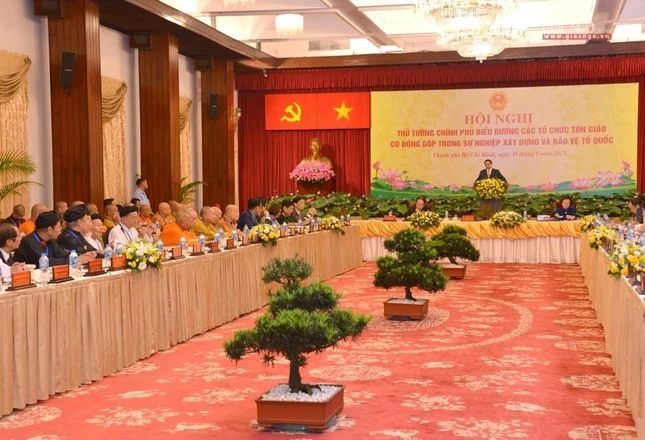 Thủ tướng Chính phủ Phạm Minh Chính ghi nhận tất cả các ý kiến, đề xuất của lãnh đạo, các chức sắc, đại biểu tôn giáo tại hội nghị, đồng thời ghi nhận, đánh giá cao những đóng góp tích cực của chức sắc, chức việc, tín đồ các tôn giáo trong công cuộc xây dựng, bảo vệ đất nước.