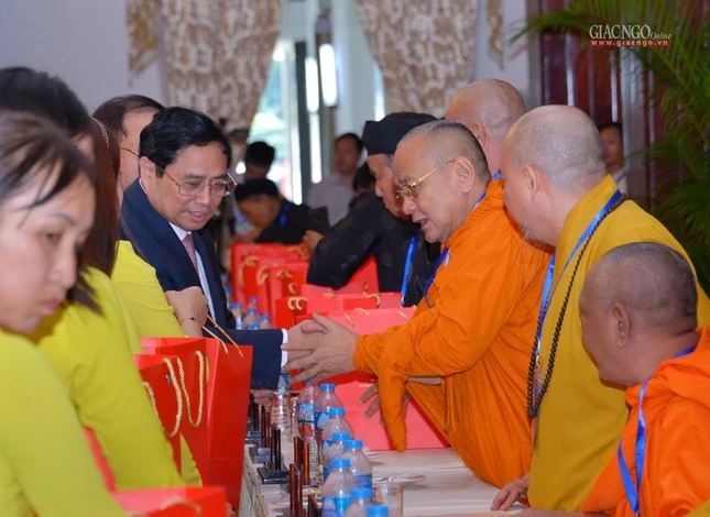 Thủ tướng Chính phủ Phạm Minh Chính chào Hòa thượng Thích Thiện Nhơn và chư tôn đức lãnh đạo GHPGVN