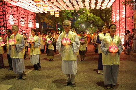 Hàng vạn Tăng Ni, Phật tử và du khách thập phương với đủ tất cả thành phần, từ Chư Tôn Thiền Đức cho đến quý vị nhân sĩ trí thức, các bô lão, các em học sinh, đoàn viên Phật tử… đều đã đến dự lễ Rước Phật, tạo cho Huế đêm 18/5 trở thành một ngày hội tâm linh đậm màu thiêng thiêng liêng và tưng bừng nhất từ trước đến nay.