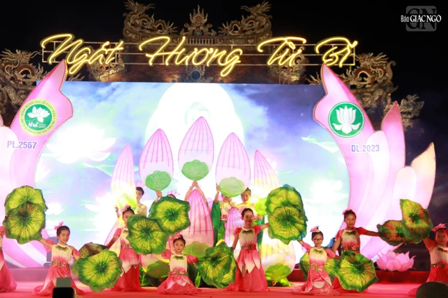 Tối cùng ngày, chương trình văn nghệ với chủ đề: “Ngát hương từ bi” do các ca sĩ Phật tử và các đơn vị Gia đình Phật tử trên địa bàn TP.Huế trình diễn cúng dường Phật đản diễn ra tại sân khấu Nghinh Lương Đình.