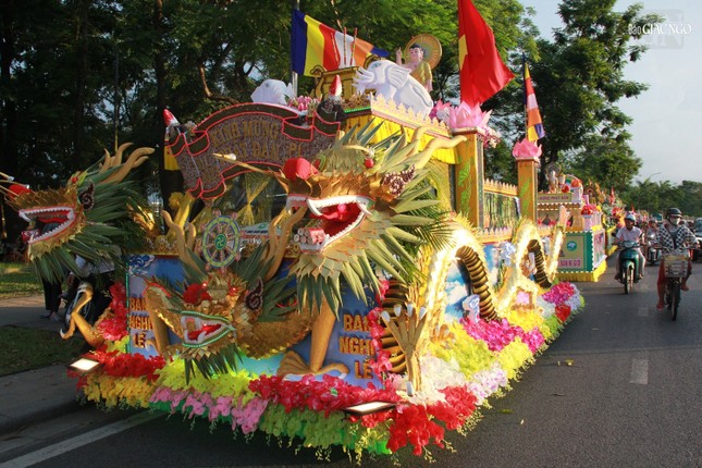 Chương trình diễu hành xe hoa cúng dường Phật đản tại Huế sẽ tiếp tục vào 18 giờ tối ngày 15-4 ÂL tại bờ Nam sông Hương.