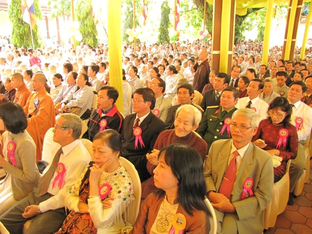 Về phía chính quyền có ông Hồ Xuân Mãn - Bí thư Tỉnh ủy tỉnh Thừa Thiên Huế; ông Trần Phùng - Chủ tịch UBMTTQVN tỉnh Thừa Thiên Huế; ông Ngô Hòa - Phó Chủ tịch UBND tỉnh Thừa Thiên Huế cùng đại diện lãnh đạo của các Ban, Ngành, đoàn thể và hàng ngàn Tăng, Ni Phật tử tham dự.