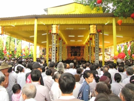 Vào lúc 10giờ chư tôn đức và quan khách đã quang lâm cắt băng khánh thành và tiến vào chánh điện dâng hương cầu nguyện cho Đạo pháp trường tồn, Tổ quốc vinh quang, nhân dân an lạc.