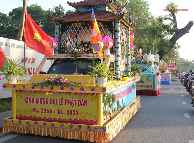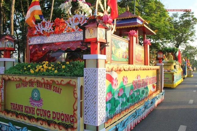 Xe hoa ở mừng Phật đản ở Huế luôn thu hút sự quan tâm của công chúng; so với nhiều kỳ trước, số lượng xe hoa năm nay giảm hơn 1/3 |