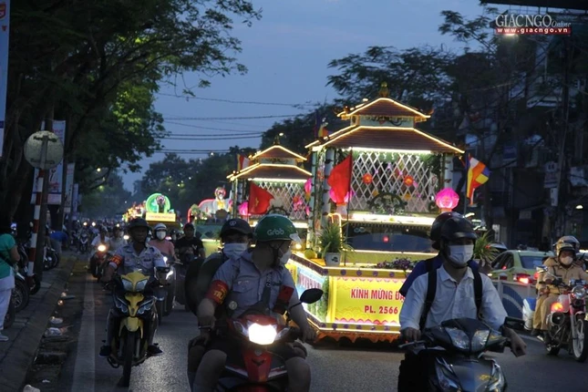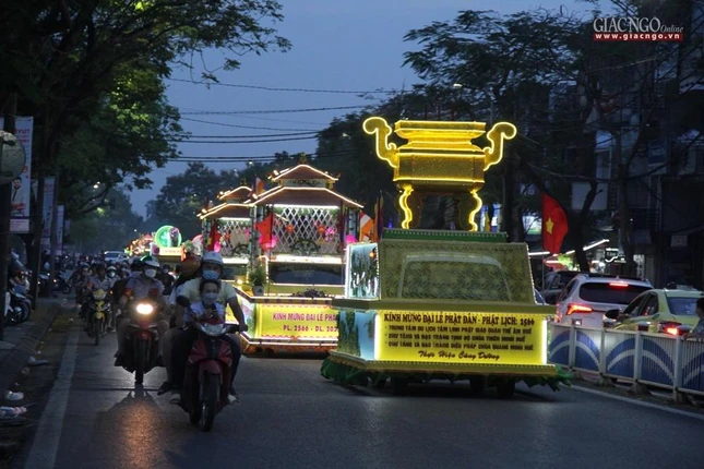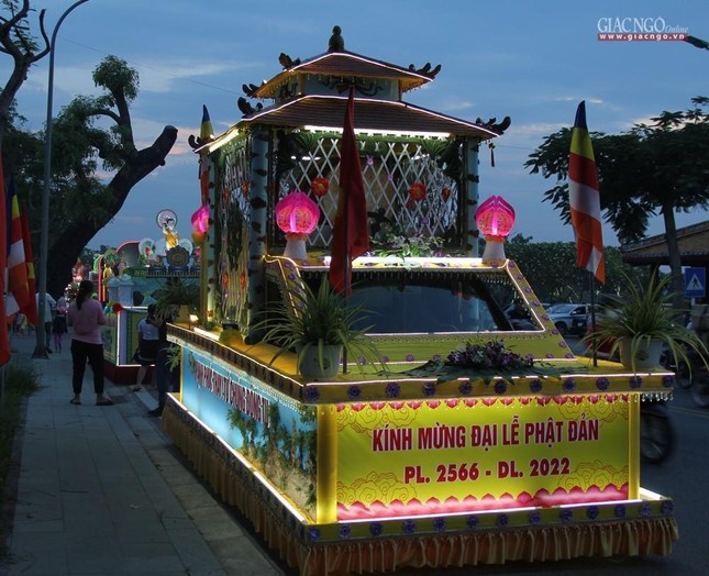 GNO - Tối ngày 13-5 (13-4-Nhâm Dần), tại Nghinh Lương Đình, Ban Tổ chức Đại lễ Phật đản Phật lịch 2566 tại Thừa Thiên Huế khai mạc diễu hành xe hoa và văn nghệ cúng dường mừng ngày Khánh đản của Đức Phật năm nay.