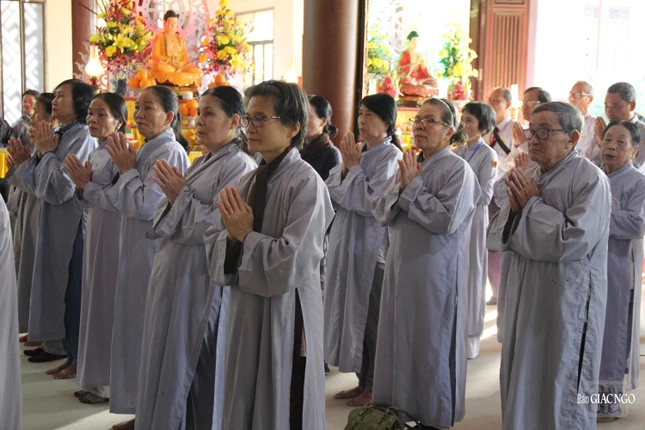Trong không khí trang nghiêm, chuông trống Bát-nhã trầm hùng, Trưởng lão Hòa thượng Chứng minh niêm hương cúng dường; chư Tăng Ni, Phật tử nhất tâm tưởng nhớ đến ngày Đức Bổn sư Thích Ca Mâu Ni thành đạo dưới cội Bồ-đề xứ Ấn Độ xưa.