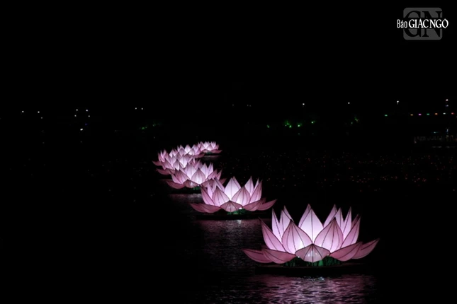 GNO - 19 giờ ngày 8-4-ÂL, tại bến Nghinh Lương Đình (TP.Huế), Ban Tổ chức Đại lễ Phật đản Phật lịch 2568 tại tỉnh Thừa Thiên Huế đã long trọng tổ chức Lễ thắp sáng 7 đóa hoa sen trên sông Hương.