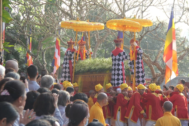 | Kim quan Trưởng lão Hòa thượng được nhập bảo tháp vào lúc 8 giờ 30 sáng 9-2 |