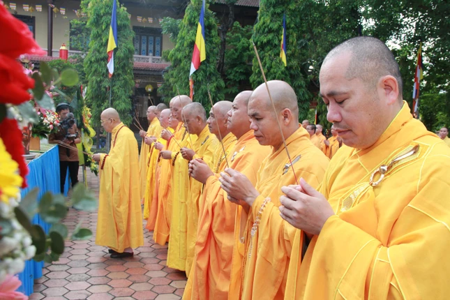 Chuông trống Bát-nhã trầm hùng, trầm hương quyện tỏa, đối trước thánh tượng của Bồ-tát Thích Quảng Đức và chư anh linh Thánh tử đạo, Trưởng lão Hòa thượng Thích Đức Thanh nhất tâm dâng hương cúng dường tưởng niệm. Đại chúng đồng tụng Tứ Hoằng thệ nguyện, Tam tự quy y và cảm tạ hồi hướng.