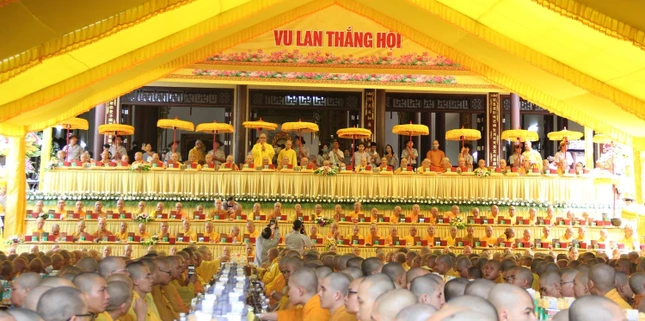 Sau lễ Tự tứ, toàn thể Tăng Ni, Phật tử cử hành lễ Vu lan và thiết lễ trai Tăng cúng dường nhân mùa Vu lan - Báo hiếu.