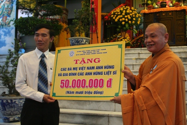 Buổi lễ còn có sự phát biểu của ông Nguyễn Văn Cao - Phó Bí thư Đảng ủy - Chủ tịch Ủy ban Nhân dân tỉnh TT-Huế. Tại buổi lễ, Hòa thượng Thích Thiện Nhơn đã thay mặt Ban tổ chức trao tặng đến các bà mẹ Việt Nam anh hùng và các anh hùng liệt sĩ 50.000.000 đồng (năm mươi triệu đồng). Buổi lễ kết thúc bằng nghi lễ dâng hương Tưởng niệm và Trai tăng chú nguyện cầu siêu cho các anh hùng liệt sĩ.