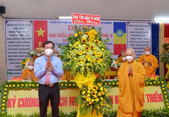 Các cơ quan TP.HCM bà Phan Kiều Thanh Hương, Phó Chủ tịch Ủy ban MTTQVN TP.HCM; ông Nguyễn Duy Tân, Phó Giám đốc Sở Nội vụ, Trưởng ban Tôn giáo TP.HCM; ông Nguyễn Trung Thành, Trưởng phòng Dân tộc - Tôn giáo Ban Dân vận Thành ủy; ông Trần Văn Nam, Thành ủy viên, Bí thư Huyện ủy Bình Chánh, cùng đại diện lãnh đạo các cơ quan, đoàn thể thuộc huyện, Phật tử tiêu biểu đến tham dự đại hội.