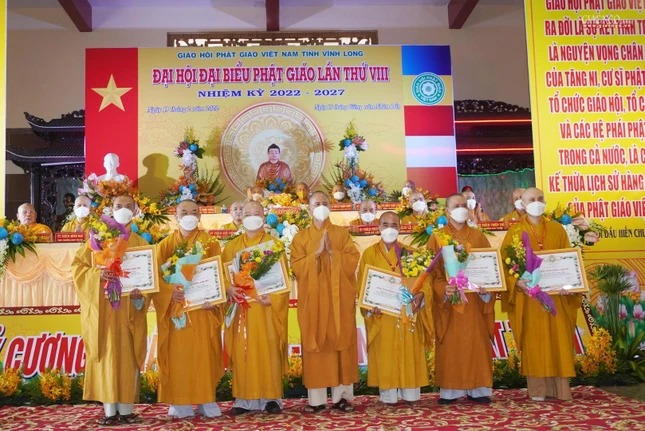 Ghi nhận những đóng góp của toàn thể Tăng Ni Phật tử tỉnh Vĩnh Long trong nhiệm kỳ qua; Hội đồng Trị sự đã trao tặng Bằng tuyên dương công đức cho 1 tập thể, 18 cá nhân hoàn thành xuất sắc công tác Phật sự nhiệm kỳ 2017-2022; 5 tập thể và 10 cá nhân nhận Bằng khen của UBND tỉnh; Ủy ban MTTQVN tỉnh Vĩnh Long cũng trao Bằng khen đến 5 tập thể và 10 cá nhân có thành tích xuất sắc trong "Phong trào phụng đạo, yêu nước, xây dựng khối đại đoàn kết toàn dân tộc".