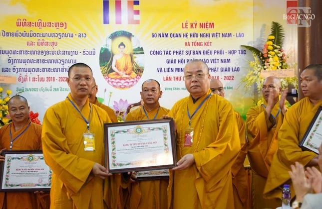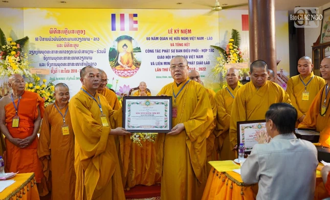GNO - Sáng 24-9, tại chùa Phật Tích - thủ đô Viêng Chăn, Trung ương GHPGVN và Trung ương Liên minh Giáo hội Phật giáo Lào đã tổ chức kỷ niệm “Năm Đoàn kết hữu nghị Việt Nam - Lào, Việt Nam - Lào 2022”, tổng kết hoạt động Phật sự Ban Điều phối GHPGVN tại Lào giai đoạn 2018-2022.