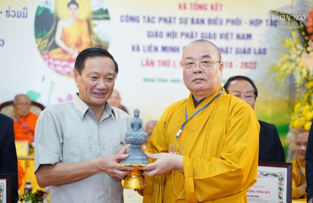 Chứng minh có Hòa thượng Thích Thiện Nhơn, Chủ tịch Hội đồng Trị sự GHPGVN; Hòa thượng Bounma Simavong, Chủ tịch Liên minh Giáo hội Phật giáo Lào.