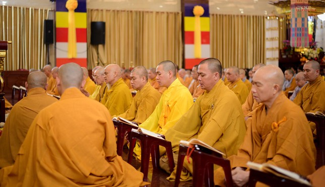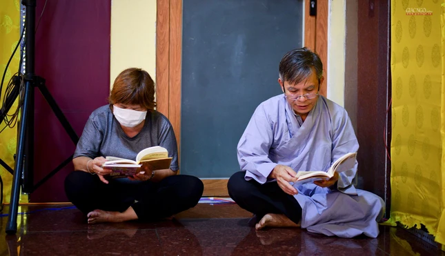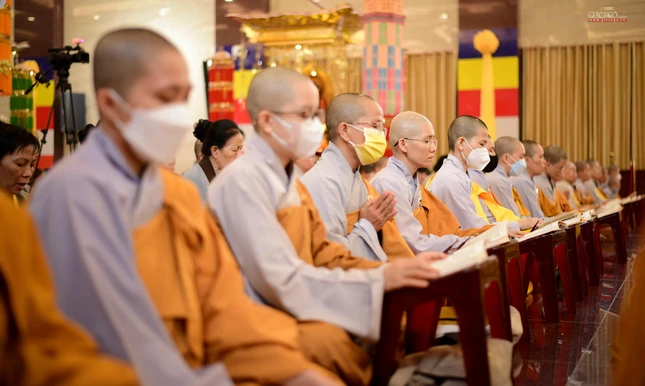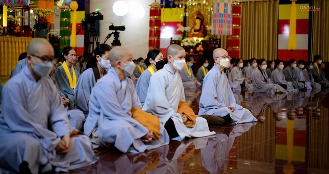 Theo đó, đạo tràng trang nghiêm với thời pháp thoại "Hướng về chư hương linh tử vong trong đại dịch Covid-19" của Thượng tọa Thích Quang Thạnh, Phó ban Trị sự kiêm Trưởng ban Giáo dục Phật giáo TP.HCM chia sẻ với hội chúng về những mất mát lớn, đau thương vẫn còn đang âm ỉ trong lòng người ở lại.