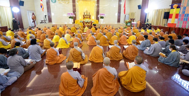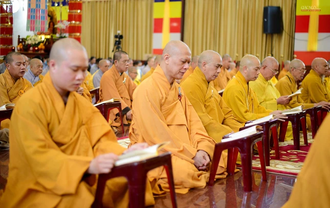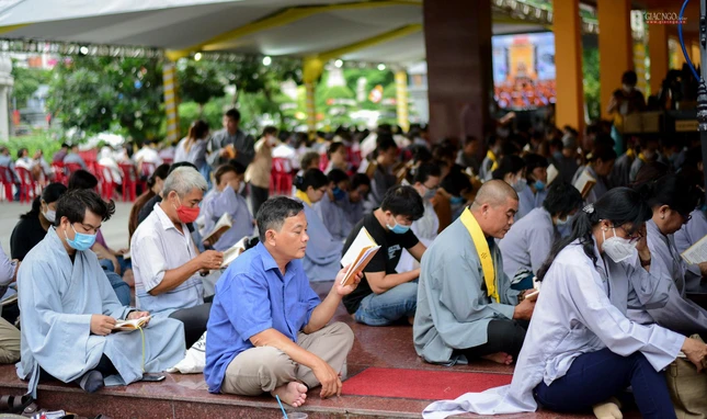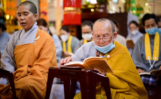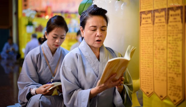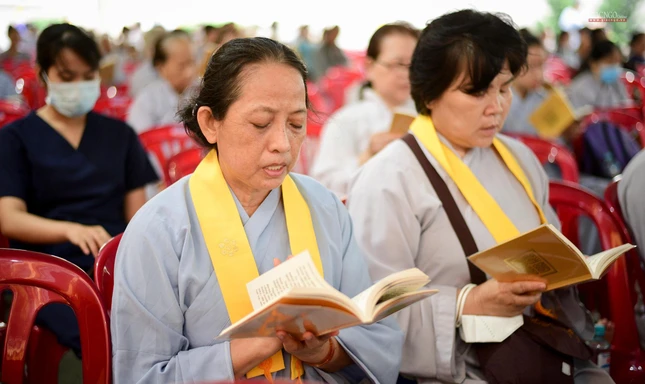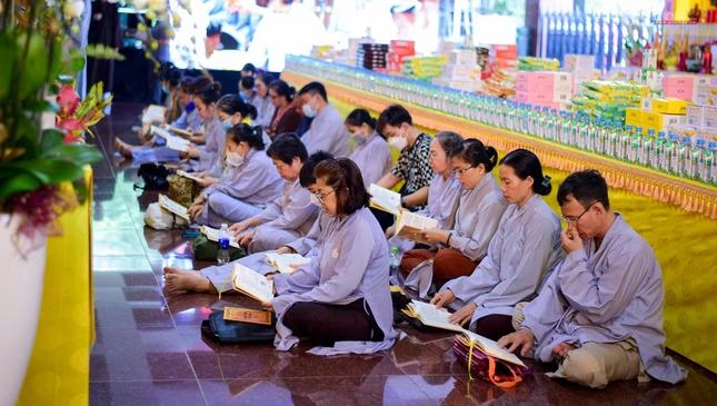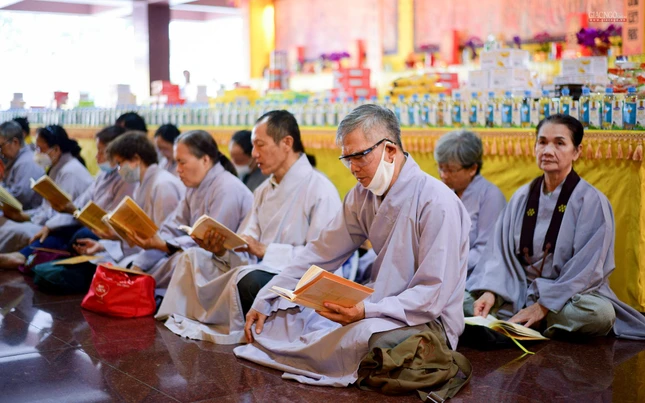 Tiếp đó, chư tôn đức Tăng Ban Trị sự GHPGVN TP.HCM, Ban Nghi lễ, Ban Trị sự TP.Thủ Đức, chư Tăng Ni và Phật tử các cơ sở tự viện tại đơn vị GHPGVN quận: Tân Phú, Bình Thạnh, Phú Nhuận, Gò Vấp tham gia khóa lễ trì tụng kinh Địa Tạng.