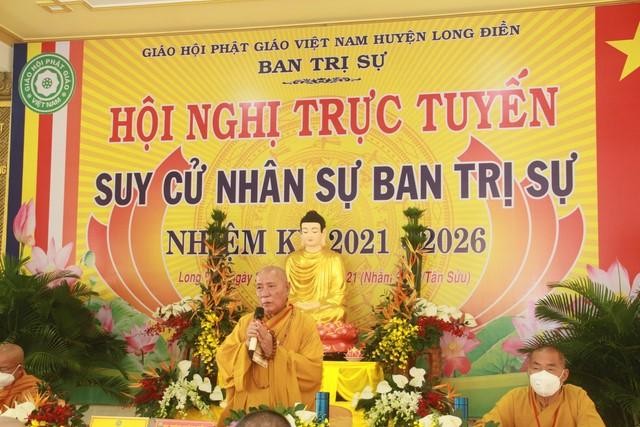 Theo đó, Phật giáo huyện Long Điền ghi nhận nhiều những thành tựu khả quan và khởi sắc, góp phần ổn định và phát triển trên nhiều các lĩnh vực, nổi bật nhất là công tác an sinh xã hội. Phật giáo huyện hiện có 214 vị Tăng Ni, trong đó Tăng có 65 vị, Ni có 149 vị. Với 44 cơ sở hợp pháp, 20 tịnh thất chưa hợp pháp, có 5 ngôi tịnh xá thuộc hệ phái Khất sĩ, còn lại là thuộc hệ phái Bắc tông, 3 cơ sở di tích văn hóa quốc gia.