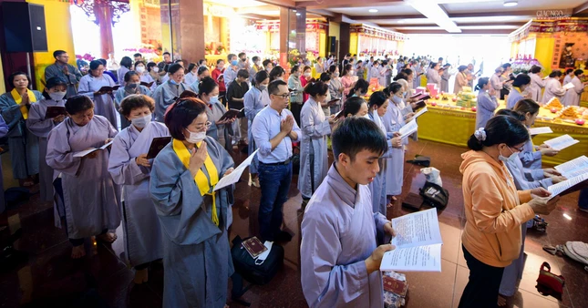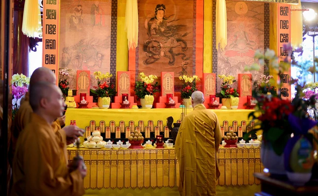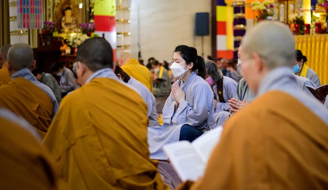 Lắng lòng nghe pháp tại pháp hội Việt Nam Quốc Tự |