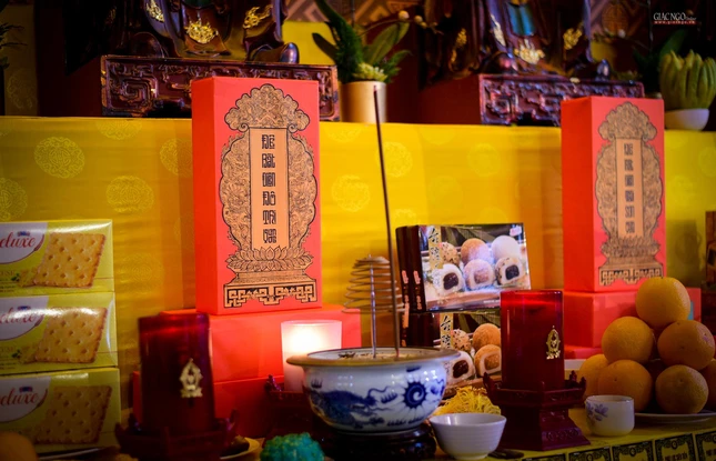 Trưa nay, chư tôn đức Ban Nghi lễ Phật giáo TP.HCM trang nghiêm cử hành khóa lễ tiến linh cầu siêu độ tại Đại lễ kỳ siêu tại Việt Nam Quốc Tự.