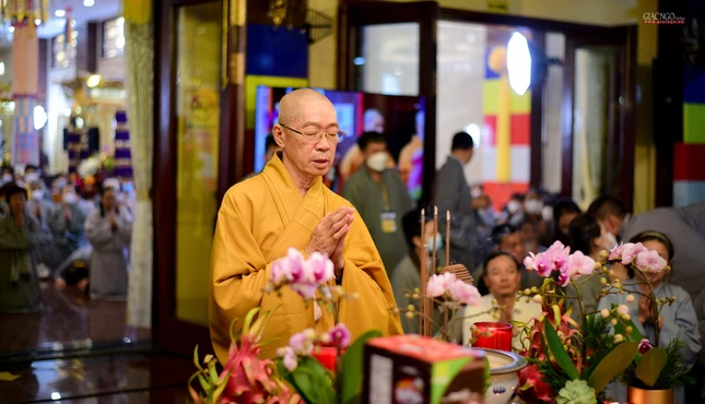 Theo đó, Thượng tọa Thích Trí Chơn, Phó ban Hoằng pháp Trung ương GHPGVN, Trưởng ban Văn hóa Phật giáo TP.HCM đăng tòa với pháp thoại chủ đề “Nước từ rửa sạch vết thương tâm” tại Đại lễ kỳ siêu đồng bào tử vong, cán bộ, chiến sĩ hy sinh trong đại dịch Covid-19, pháp hội đem lại sự bình an, tĩnh lặng tối thượng cho mọi hành giả, đều thấm nhuần ơn pháp của chư Phật, chư Bồ-tát.