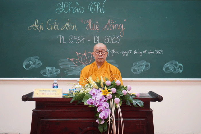 Phát biểu khai mạc, Thượng tọa Thích Quảng Lộc có lời sách tấn và chúc các giới tử thi cử thật tốt, thể hiện trọn vẹn tâm đức của người cần cầu học Phật.