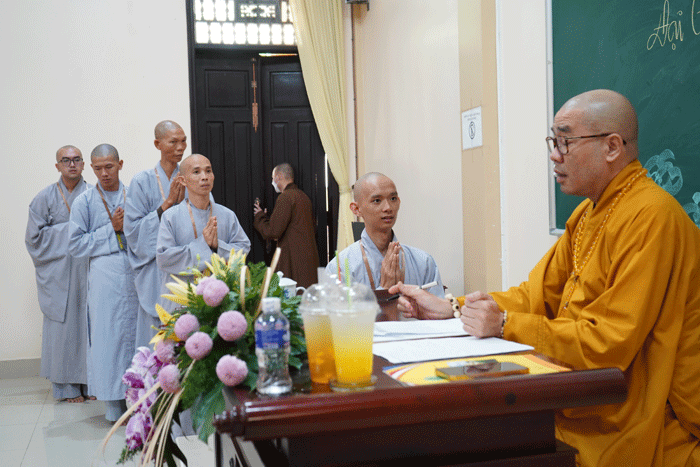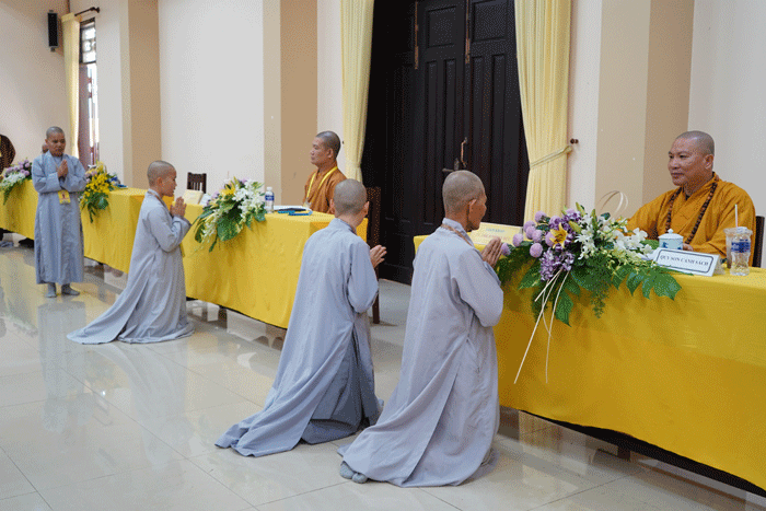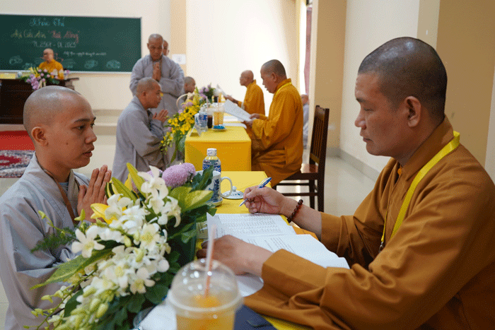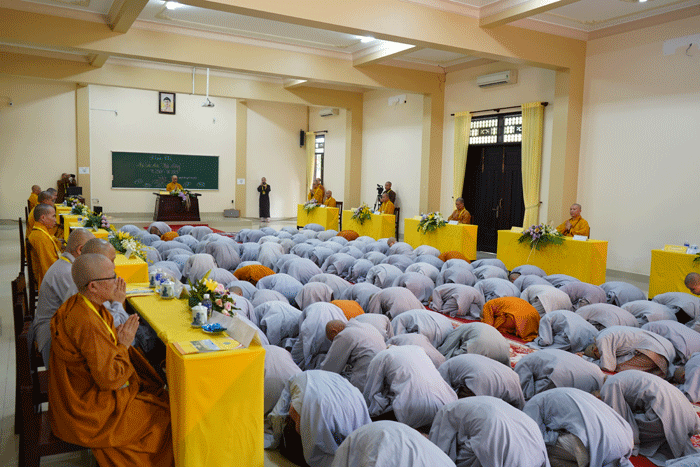 Giới tử lắng nghe lời sách tấn của Thượng tọa Chánh Chủ khảo |