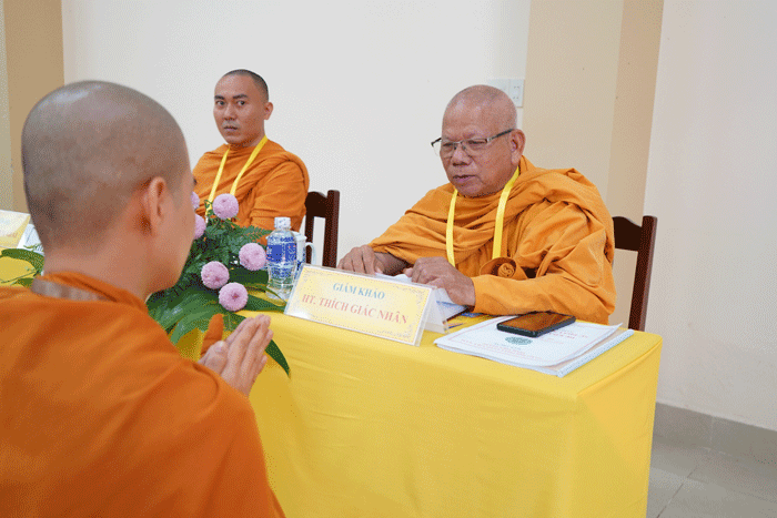 Tại buổi khảo thí, các Giới tử lần lượt trả lời các câu hỏi miệng, sau đó là trình bày luận văn. Chư tôn đức trong Ban Tổ chức và Ban Giám khảo đã được phân công phụ trách đồng loạt tiến hành khảo thí các giới tử theo các đàn giới cầu thọ.