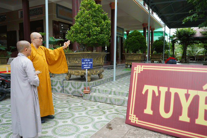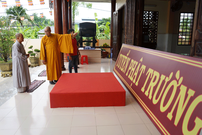 GNO - Để sẵn sàng cho Đại giới đàn Huệ Đăng, Thượng tọa Thích Quảng Lộc, Ủy viên Hội đồng Trị sự, Trưởng Ban Trị sự GHPGVN tỉnh, Trưởng ban Kiến đàn đã trực tiếp kiểm tra, chỉ đạo công tác trần thiết cũng như các khâu tổ chức Đại giới đàn.