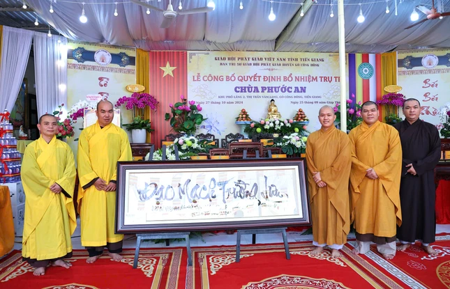 Tại buổi lễ, Đại đức Thích Đức Minh, Phó Thư ký kiêm Chánh Văn phòng Ban Trị sự GHPGVN tỉnh đọc Quyết định số 030/QĐ-BTS ngày 4-10-2024 của Ban Trị sự GHPGVN tỉnh Tiền Giang về việc bổ nhiệm Đại đức Thích Thiện Chí, thế danh Trần Thanh Tùng, sinh 1989 đảm nhiệm trụ trì chùa Phước An.