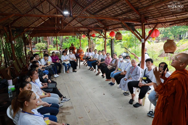 Các bạn trẻ tham gia khóa tu dành cho người bận rộn bên cạnh chư tôn đức |