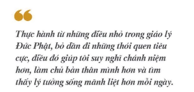 Trước đây, mỗi tối của tôi thường kết thúc rất muộn bằng phim ảnh, thì nay tôi dưỡng nuôi tâm hồn mình bằng chính những quán chiếu. Tôi hỏi chính mình, hôm nay mình có hạnh phúc không, có làm tổn thương ai không, việc gì cần sửa. Và đã thành thói quen, tôi luôn nói lời cảm ơn, niệm Phật trước khi đi vào giấc ngủ.