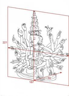 1. Phần thân tượng được lắp ghép: phần đầu từ tượng nhỏ A di đà đặt trên đỉnh xuống bốn tầng mặt ba chiều phía dưới đến cổ, là một khối liền. Từ vai đến khối chân, tức là khối thân liền. Khối chân xếp bằng, và 42 tay lớn lắp ghép vào khối thân, các tay đều lắp rời, có tay làm liền, có tay lại chia ra từng đoạn ghép vào nhau: cánh tay, khuỷu tay, bàn tay.