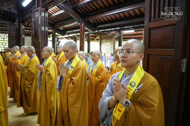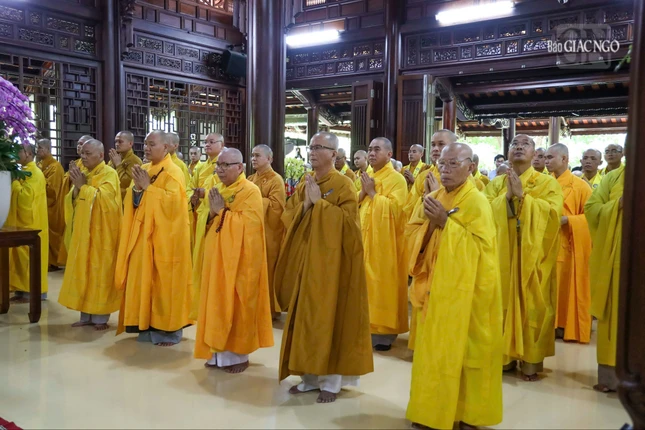 Trong không khí trang nghiêm, chư tôn đức niêm hương cúng dường, đảnh lễ Giác linh cố Đại lão Hòa thượng Đệ nhất Chủ tịch Hội đồng Trị sự GHPGVN và cử hành lễ cúng ngọ.