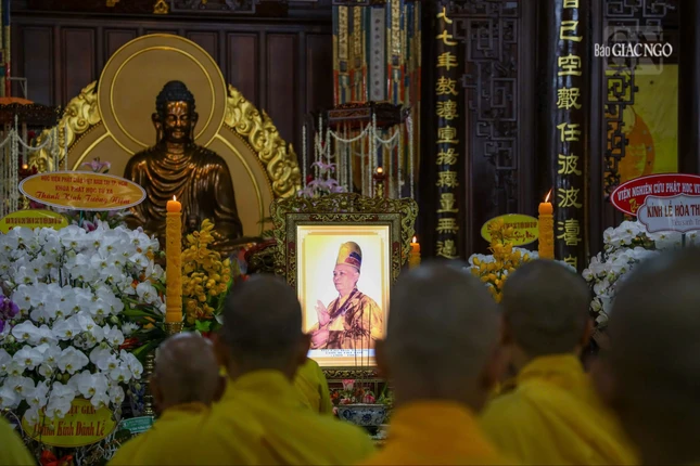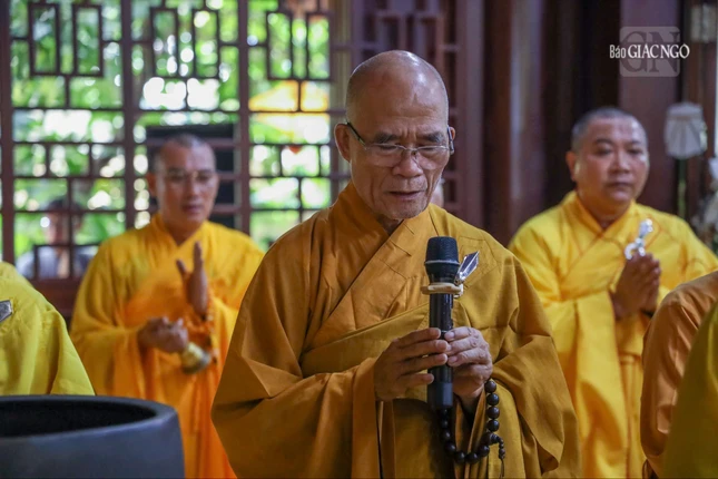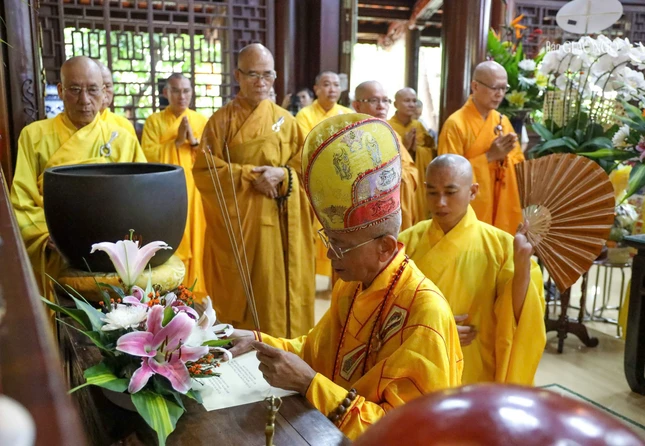 Dâng hương tưởng niệm có Trưởng lão Hòa thượng Thích Giác Quang, Phó Pháp Chủ Hội đồng Chứng minh; Trưởng lão Hòa thượng Thích Đức Thanh, Ủy viên Thường trực Hội đồng Chứng minh cùng chư tôn đức Ban Thường trực Ban Trị sự GHPGVN TP.Huế và chư Tăng Ni các tổ đình, đạo hữu Phật tử các giới.