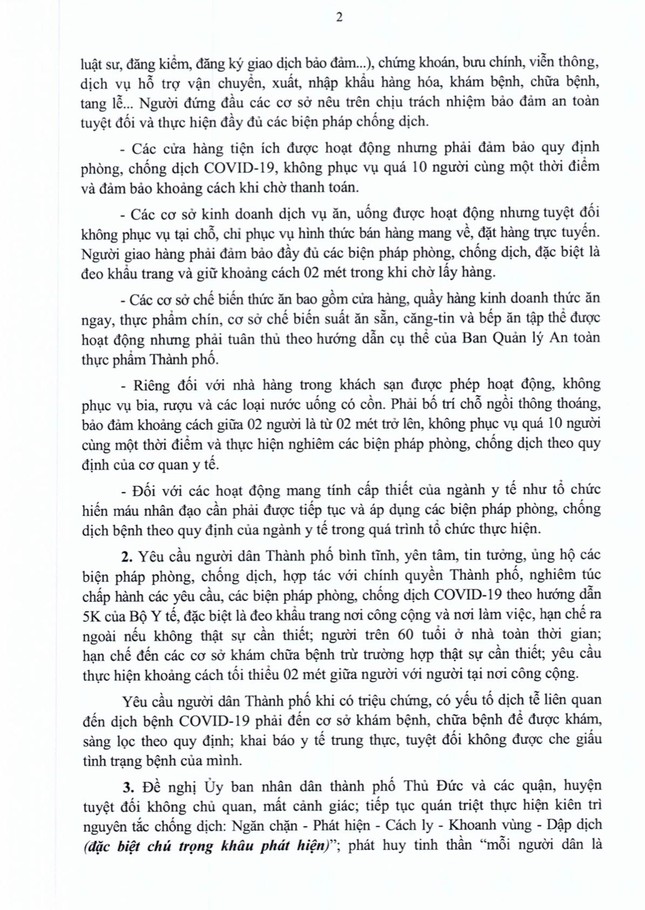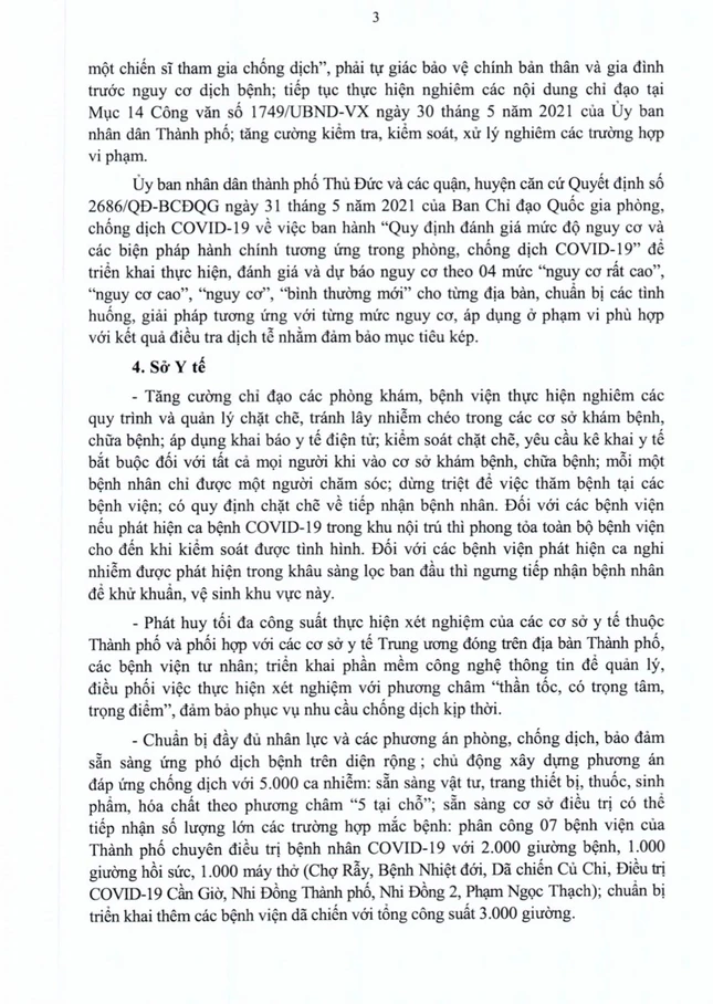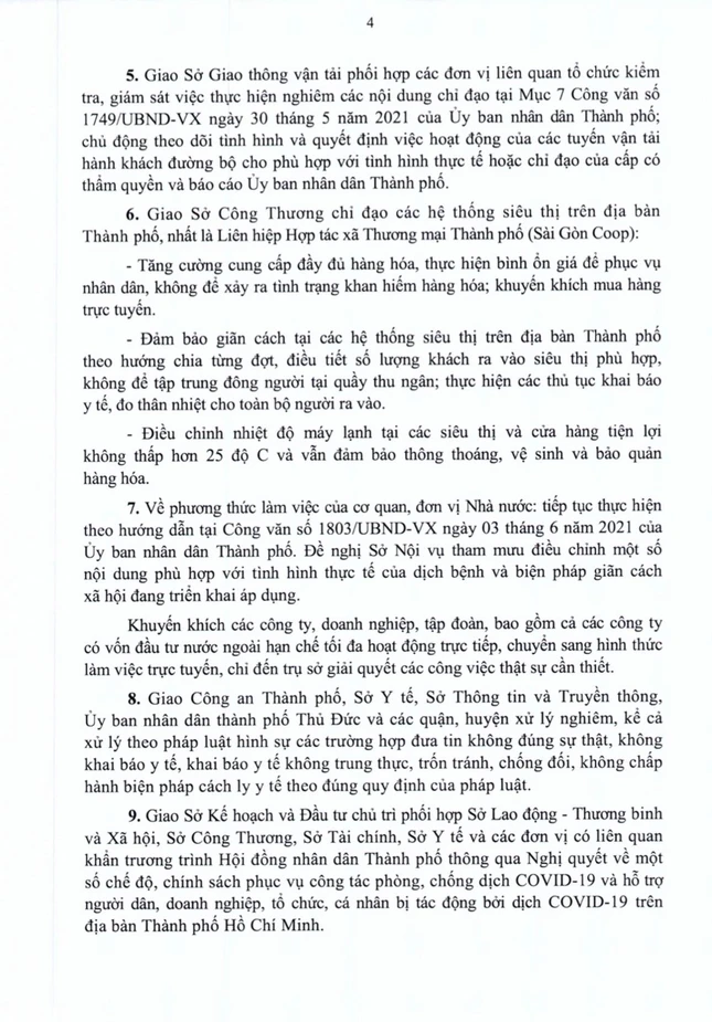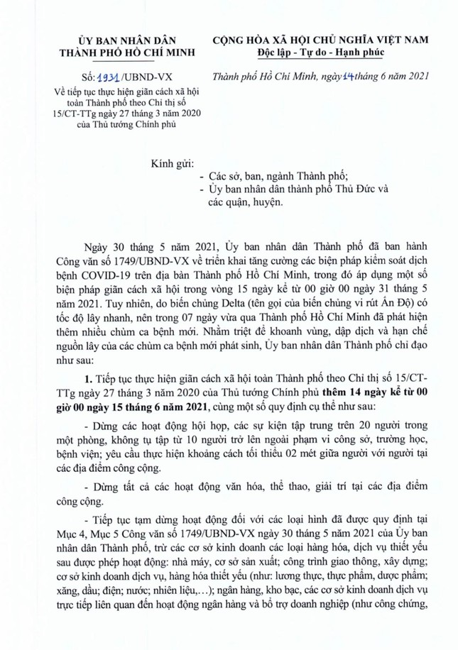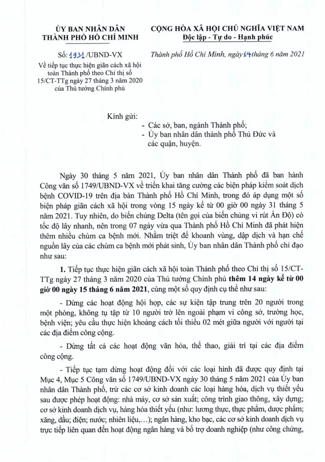 Sau đây là toàn văn quyết định của Ủy ban Nhân dân TP.HCM do Phó Chủ tịch Dương Anh Đức ký phổ biến tối nay 14-6-2021. Cùng theo dõi để biết hoạt động gì được nới lỏng, điều gì hạn chế, cấm hoạt động.