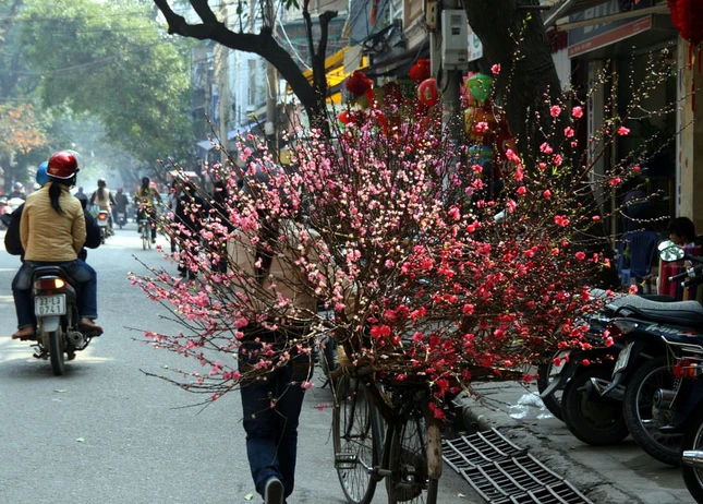 Nào bánh nào kẹo, nào mứt nào ô mai. Nào đào nào quất, nào câu đối đỏ ngày Tết. Không khí nhuộm một màu đỏ rực rỡ đầy sống động. Hoa đào khoe sắc hồng, hoa mai vang rực rỡ, hoa cúc muôn màu. Xuân về mang theo không khí tưng bừng náo nhiệt trên khắp các nẻo đường
