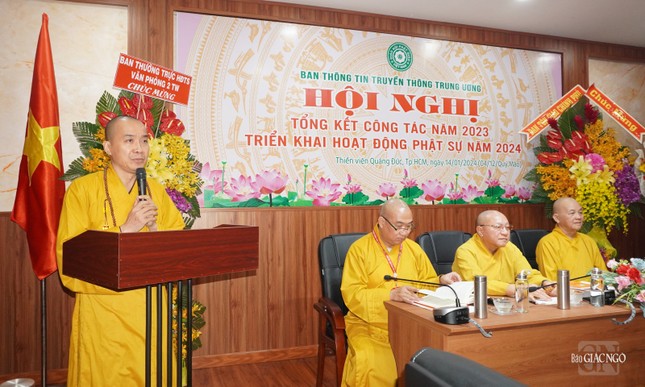 Thượng tọa Thích Minh Nhẫn, Phó ban Thường trực Ban Thông tin - Truyền thông T.Ư cũng đã triển khai các kế hoạt hoạt động năm 2024 của Ban, tập trung một số công việc như: Ban Thông tin - Truyền thông T.Ư sẽ tăng cường sản xuất tin, bài về công tác Phật sự trong nước và quốc tế; tổ chức chương trình giao lưu nghệ thuật “Vu lan - Đạo hiếu - Dân tộc” năm 2024, dự kiến lần đầu tiên được tổ chức tại Khu vực phía Nam, truyền hình trực tiếp cả nước vào khoảng tháng 8 năm 2024;...